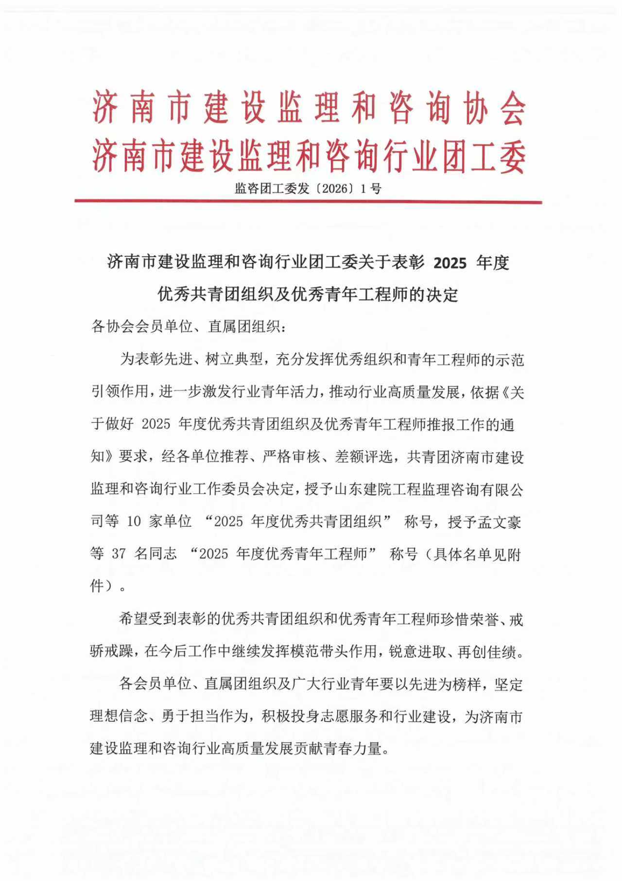 熱烈慶祝山東恒信建設(shè)監(jiān)理有限公司共青團組織獲評濟南市建設(shè)監(jiān)理和咨詢協(xié)會2025年度優(yōu)秀共青團組織,2名青年員工榮獲優(yōu)秀青年工程師稱號!